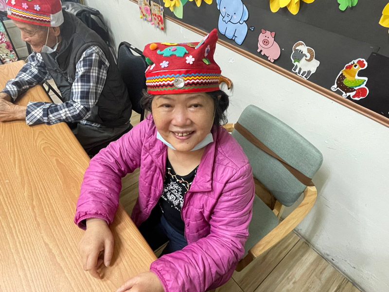 瑞穗失智據點「智寶樂園」則融入阿美族文化特色,帶領長輩製作原民風聖誕帽,並為下半年度的壽星慶生。歌聲、蛋糕與祝福交織,讓節慶在熟悉的陪伴中自然展開,留下溫柔而踏實的回憶。