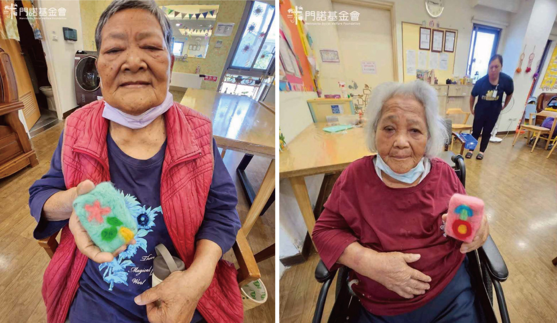 玉里日照中心的阿公阿嬤們化身小小手作達人,在照服員陪伴下製作療癒的「羊毛氈皂」,從選香皂、包羊毛到輕輕定型,既動手又活腦。有的阿嬤氈出愛心與小花,有的阿公氈上大自然景色,爺奶們完成後,笑容就像羊毛般柔軟,開心合照。這份小手作不只是作品,更是老朋友們彼此陪伴的美好記憶。