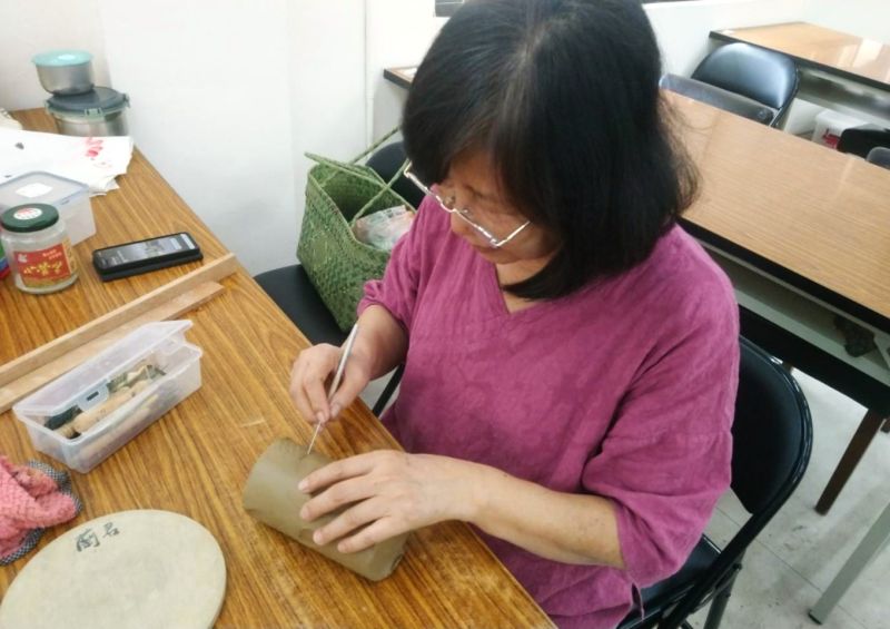 魏蘭君老師是瀛海中學的退休英文教師,已在長青學苑學習3年多。在這裡她學到了流動畫、工筆畫、篆刻技法、水墨畫以及陶藝。她本身也是一位女陶藝家。她說來這裡學習好像回到自己第二個家一樣的舒服,園區環境優美,讓身心靈都能得到充分的休息,很想在園區住下來。她也很熱心地介紹好幾位北部朋友來園區參觀和住宿。在這裡畫畫,累了可以喝杯咖啡休息一下或是帶家裡研磨的豆漿來喝,偶爾聽聽園區的蟲鳴鳥叫,或是跟好朋友打屁聊天,都是生活中美好的享受。已逾古稀之年的蘭君老師,她認為生活即藝術、即品味。