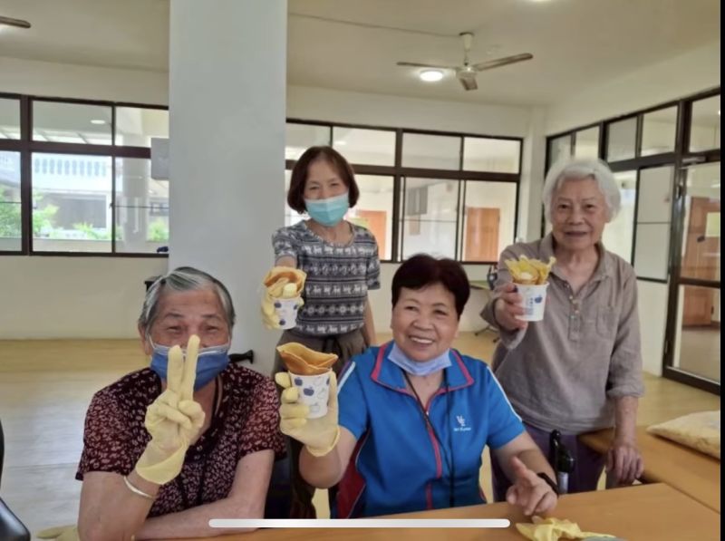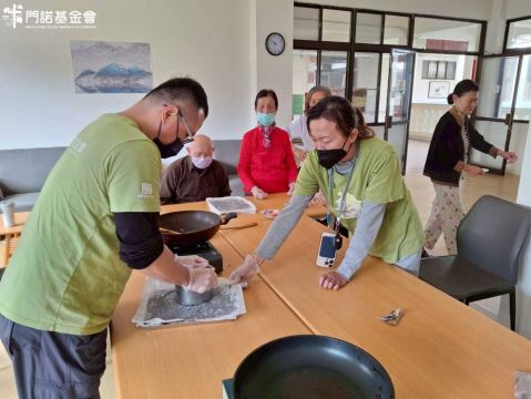一開始長輩們擔心可麗餅太困難、手部不夠靈巧,但在同工的耐心引導下,長輩們彼此打氣、分工合作,越做越順手。